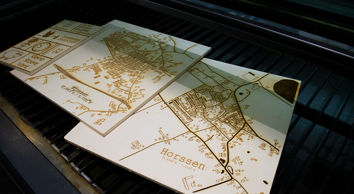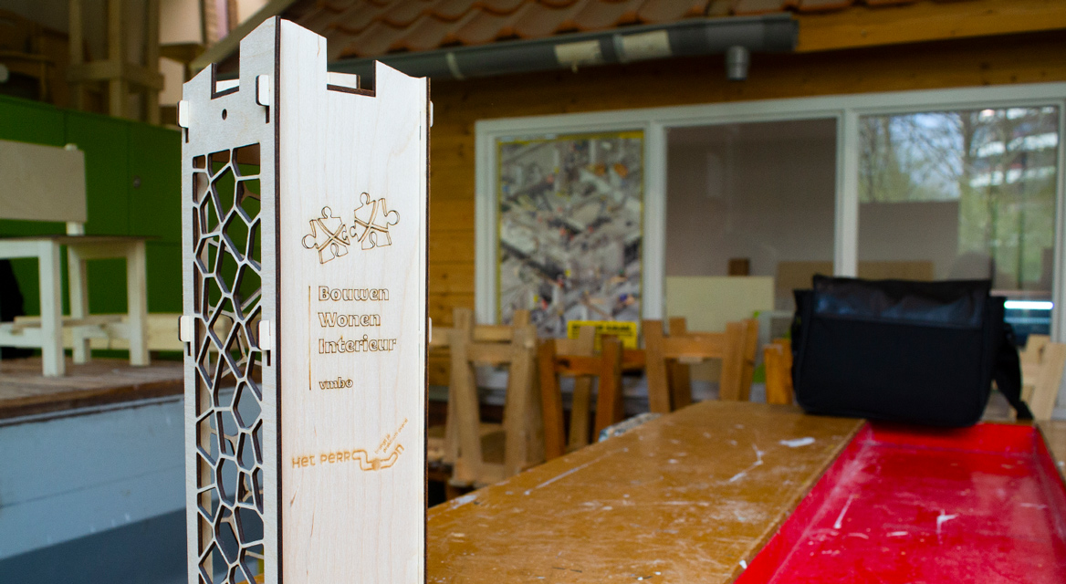 Wanneer je richting het lokaal van de BWI afdeling loopt, wordt je verrast door allerlei verschillende werkstukjes. Van stoeltjes tot skylines, van wijnkistjes tot citymaps. Een ding is gelijk duidelijk; de lasermachine wordt veel gebruikt! Het Perron biedt vernieuwend onderwijs met moderne technieken aan haar studenten en wil dan ook graag met de tijd mee gaan. Dat is dan ook de reden dat zij altijd op zoek zijn naar nieuwe moderne technieken. Kaj Wassink, docent Bouwen Wonen & Interieur op Het Perron, trof Vrotech op een van de regiobijeenkomsten van Platform BWI. Hij was direct enthousiast over de mogelijkheden met de machine. “Eigenlijk was ik helemaal niet op de hoogte van wat een lasermachine was, en wat het kon. Ik had er zelfs nog nooit aan gedacht, totdat ik Vrotech tegenkwam op een van de regiobijeenkomsten. Toen ik zag welke mogelijkheden een lasermachine kon bieden wist ik meteen dat we deze techniek ook goed binnen het onderwijs konden gebruiken”. Kaj vertelt dat de komst van een lasermachine ook de interesse heeft gewekt van andere scholen en vestigingen. “Er zijn al wat scholen informatie komen inwinnen en de machine komen bekijken”.