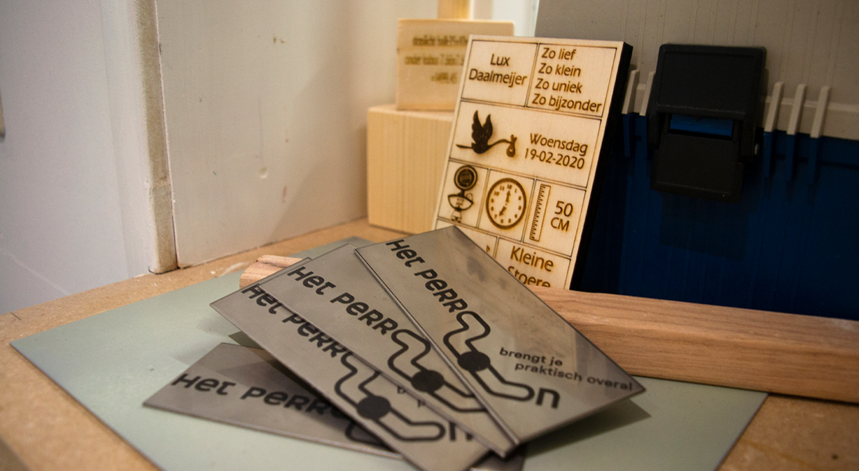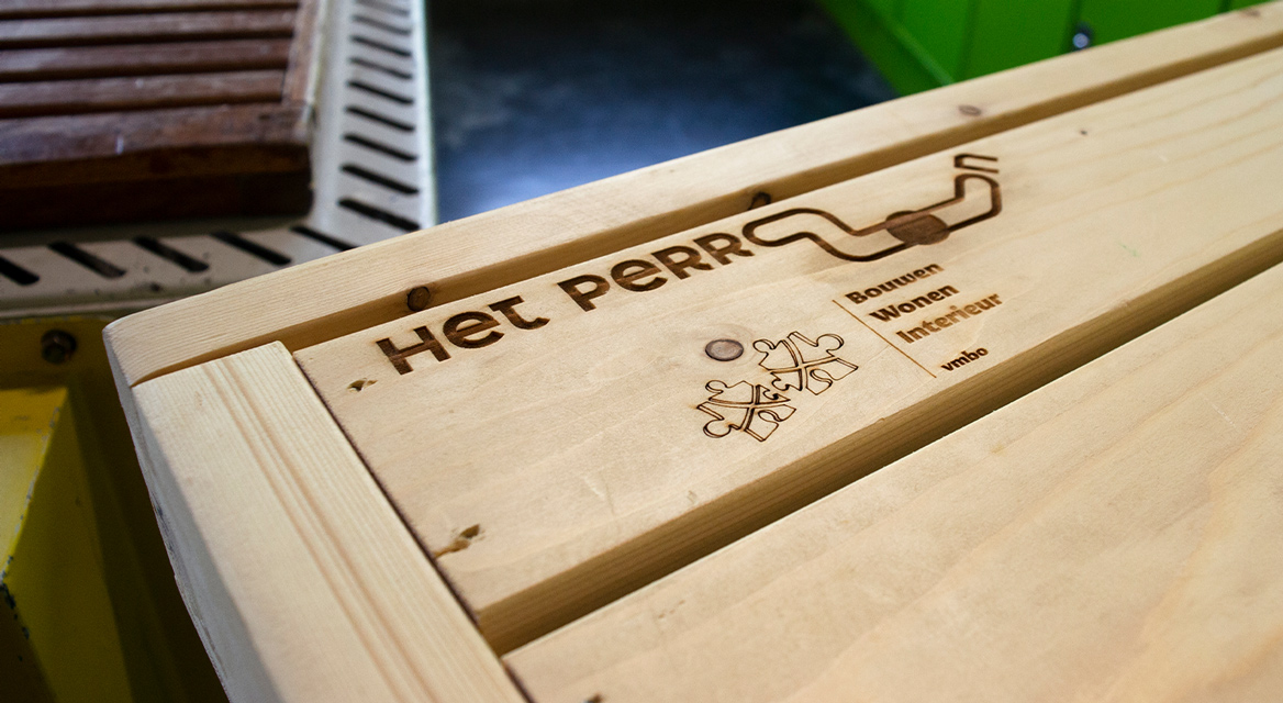Sinds de komst van de BRM lasermachine blijven de eindproducten niet alleen binnen de school. Ook andere bedrijven weten de lasertechniek bij Het Perron te vinden. “Het is leuk om te zien dat we onze machine ook kunnen inzetten voor derden.” Zo verteld Kaj: “Laatst hebben wij een Stichting in Veenendaal geholpen, een bedrijf sponsorde 50 vogelhuisjes die we van een gravure hebben voorzien. Erg leuk, want zo leren de studenten ook nog eens met verschillende soorten materialen te werken. Zeker door diverse opdrachten komen er veel verschillende soorten materiaal voor!”