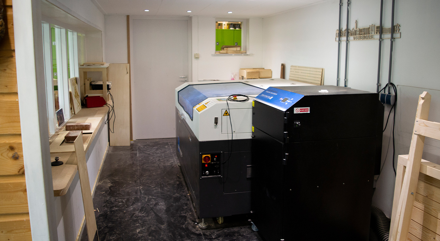 Binnen het praktijkonderwijs vind je veel verschillende machines. Toch werd er niet getwijfeld. “Eigenlijk waren we gelijk verkocht van de lasermachine. We hebben wel eens naar een CNC Freesmachine gekeken, maar deze was echt te groot. 3D-printers hadden we al binnen het Perron. We hebben wel eens overwogen om deze in te zetten, bijvoorbeeld om prototype uit te printen waar zodat de leerlingen wat tastbaars hebben. Toch waren we in alles overtuigd van de lasermachine omdat deze vele voordelen biedt, alleen al doordat deze computergestuurd is en je door middel van tekenprogramma’s de producten echt helemaal kunt eigen kunt maken”.