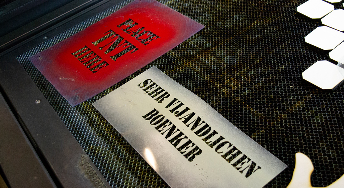 Met de komst van de lasermachine zijn er ook veel meer verschillende opdrachten bijgekomen. Juist door het makkelijker kunnen produceren is het aanbod van producten haast automatisch breder geworden. “Er is zeker veel meer werk bijgekomen door de lasercutter. Zo maken we nu ook spuitmallen waarmee afbeeldingen of teksten met verf op muren op vloeren gespoten kunnen worden. Maar ook tijdens COVID-19 heb ik vele bedrijven kunnen helpen, bijvoorbeeld door spatschermen te produceren”. Naast lasersnijden ziet Dries ook een verschil bij lasergraveren. “Ook op gebied van graveren wordt de vraag groter, zoals bijvoorbeeld met gegraveerde tissueboxjes. Het is een soort ‘sneeuwbal-effect’. Zodra mensen weten dat je een lasercutter hebt, dan wordt vraag automatisch groter omdat ze zien wat je er allemaal mee kunt doen”.