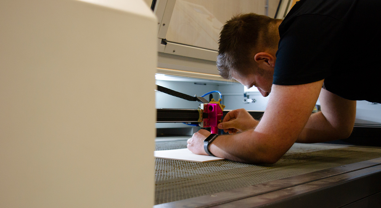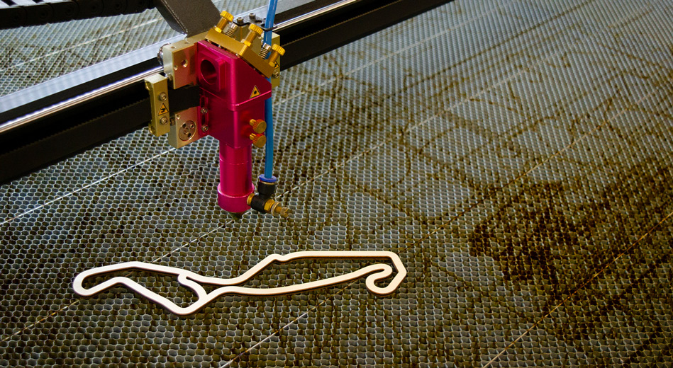 “Laserace is ontstaan vanuit de passie voor zowel autosport als hout. Binnen de autosport zijn er zo veel mooie circuits die ook echt iets met fans, liefhebbers en coureurs doen. Dat gevoel ken ik wel van het racen op ovalcircuits. Het idee om de decoratieve houten circuits te maken was dan ook al snel ontstaan en voor ik het wist kreeg dit vorm in een webshop”. De techniek was voor Reimon niet vreemd. Een vriend had een lasermachine staan en zo werd de link tussen Reimon en lasertechniek gelegd. “Ik vond het werken met de techniek altijd al mooi. Op een gegeven moment ben ik gewoon gestart met een klein Chinees apparaatje, gewoon om er mee te beginnen en zelf te onderzoeken wat ik er mee kan en wil. De kennis die ik uit de houthandel heb meegenomen kon ik vervolgens perfect toepassen op de producten en ik vond het gelijk leuk om producten te ontwikkelen. Ik moest echt vanaf 0 beginnen, ook op gebied van tekenen moest ik nog ontdekken wat de werking was. Met wat hulp van vrienden waren de circuits de eerste goedlopende producten. De een tekende, de ander produceerde. Eigenlijk tot het moment dat ik zelf kon gaan produceren… en vanaf daar is het eigenlijk alleen maar verder gegroeid”.