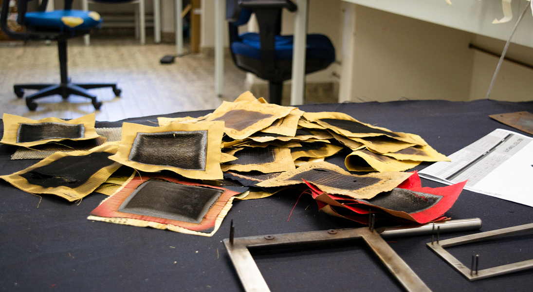 Als de stof terug op het laboratorium komt wordt het materiaal uitvoerig getest. “Afhankelijk van de eigenschappen die de stof moet hebben, wordt het daar maximaal op getest” verteld Emile tijdens zijn rondleiding door het pand. Van slijtage tot verkleuring en van trekkracht tot brandveiligheid; elke stof kan rekenen op een uitdagende testronde. Ten Cate Protect is op alle omstandigheden voorbereid. “De stalen die we met de lasermachine snijden gaan we vervolgens de test in. We onderzoeken de treksterkte van het doek zowel in kettingrichting als in inslagrichting, we simuleren zonlicht om te testen op verkleuring, we testen de slijtage door het doek een bepaald aantal toeren weerstand te bieden en ga zo maar door! Het stuk doek wat we met de lasermachine snijden is niet zomaar een los stuk doek. Deze heeft afmetingen en specificaties die voldoen aan de ISO-normering. Diezelfde ISO verwacht ook van ons dat we de stof op drie verschillende plaatsen in het doek testen. Dat was voorheen niet te doen. De lasermachine stelt ons veel makkelijker in staat om uit iedere willekeurige plaats in het doek nu stalen uit te snijden”. Maar de BRM laser biedt Ten Cate Protect B.V. niet alleen maar flexibiliteit en snelheid. “Een heel ander voorbeeld; we markeren onze stalen. Zo kunnen we in één keer aangeven of het stof met kettingrichting of inslagrichting is. Zo hebben we nooit meer dat we ons daarin kunnen vergissen. Daarnaast kunnen we wel zeggen dat de lasermachine ons vooruitgang boekt en ons helpt kwalitatief betere data te verzamelen”.