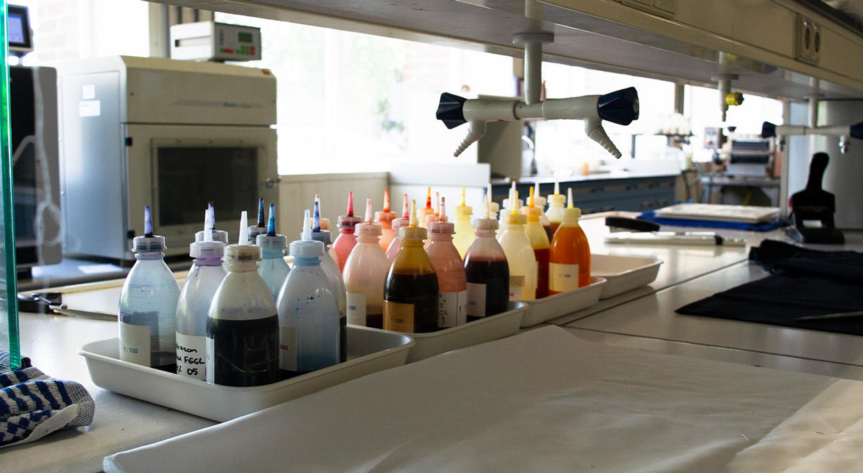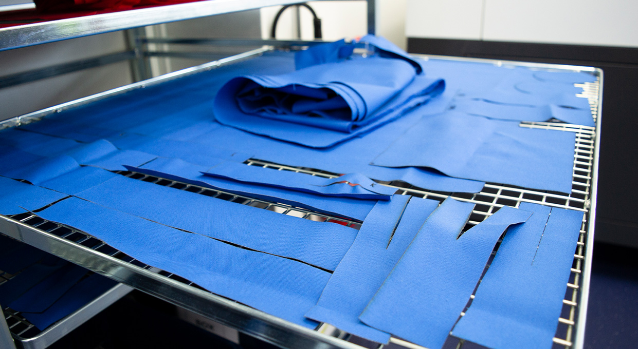 Dat stof er in alle soorten en maten is, hoef je ze bij Ten Cate Protect B.V. niet te vertellen. En, deze stoffen moeten stuk voor stuk ook nog eens diverse eigenschappen hebben en aan verschillende eisen voldoen. De eigenschappen van die stoffen blijven nooit hetzelfde; kwaliteitseisen veranderen, gebruikerswensen veranderen… “Die markten zijn continue beweging. Voor de een moet de stof brandwerend zijn, voor de ander waterafstotend en weer een ander is op zoek naar kreukherstellende stof. Niet alleen op gebied van kwaliteitseisen, maar ook bijvoorbeeld doordat de situatie van de eindgebruiker veranderd, zoals bijvoorbeeld de brandweertenues. Die veranderende situaties vragen dus ook om het blijven ontwikkelen van de best toepasbare stoffen” verteld Emile. In het laboratorium van Ten Cate Protect B.V. worden diverse stoffen aan onderzoeken onderworpen. De juiste combinatie van vezels, binding en finish zorgen dat de stof uiteindelijk aan de juiste eigenschappen voldoen. “Wanneer we de juiste combinatie vezels hebben gevonden vragen we de spinnerij om er draden van de maken. Vervolgens maakt de weverij er doek van wat wij weer finishen en uitvoerig kunnen testen”.