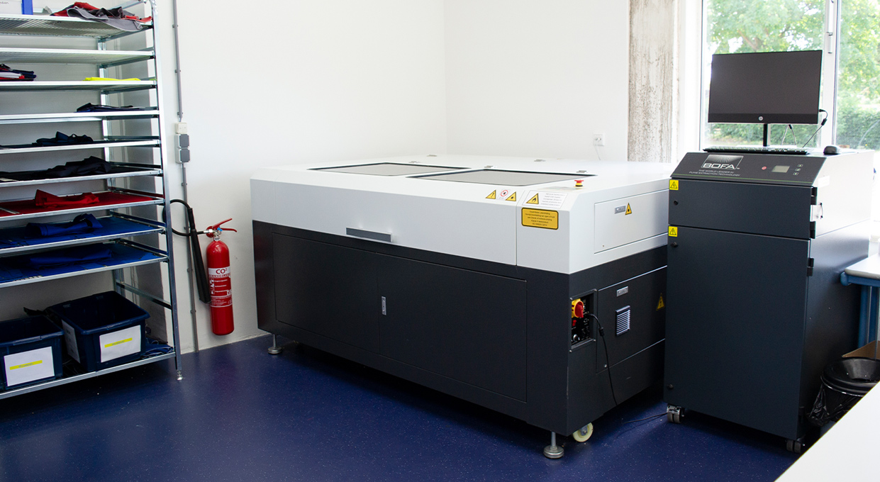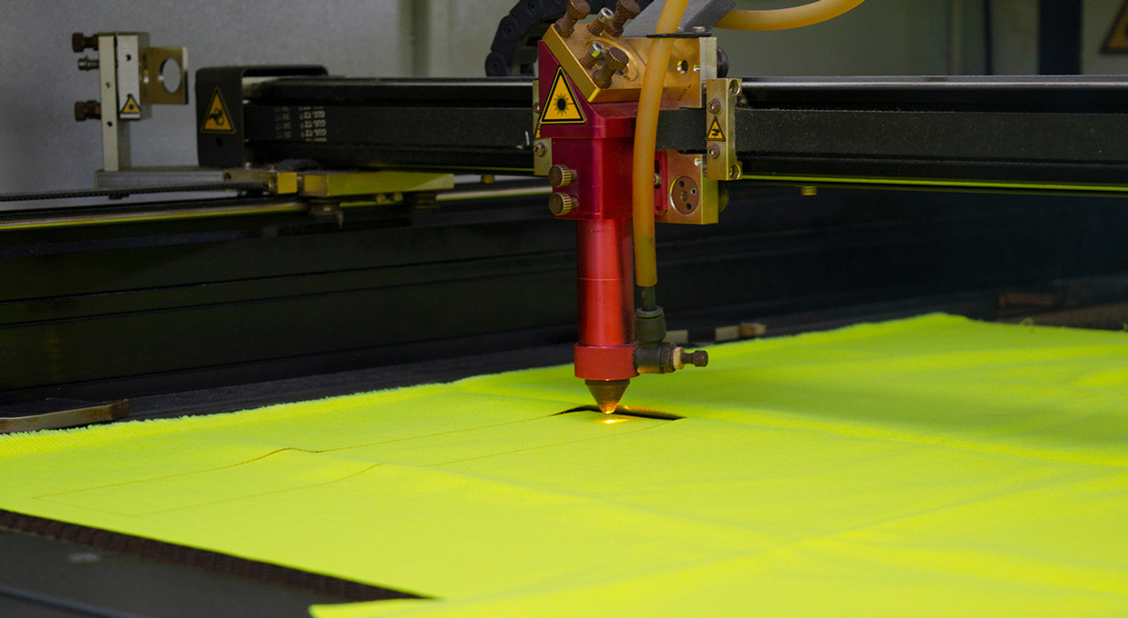 De stoffen wordt uitgebreid getest in het laboratorium en moeten daarvoor in stalen gesneden worden met een speciaal formaat. “Voorheen tekende we de vormen van de stalen uit en werden daarna met de hand uitgesneden of uitgeknipt” verteld Emile. “Als je polyester hebt, of katoen, dan is dat nog niet zo erg. Dat is makkelijker verwerkbare stof. Maar we hebben ook een hele hoop andere kwaliteiten stof die gewoon moeilijker te snijden en te knippen zijn. Het gevolg daarvan was dat onze medewerkers daardoor vaker last kregen van armen en schouders, zelfs wanneer ze speciale scharen en mesjes gebruikten. Daarnaast was het ook een vrij tijdrovende manier van werken. Die twee factoren samen maakten dat we eens wilden gaan kijken naar een andere methode. Hoe konden we nu op een gemakkelijkere en snellere manier de stofstalen realiseren?” Stansen leek eerst een optie. Het werken met de stansen ging goed, maar voor iedere staalvorm moest een nieuwe stans gemaakt worden, wat ook nog eens erg kostbaar was. “Met stansen misten we echt een stuk flexibiliteit. We besloten dus verder te kijken naar andere technieken en kwamen toen uit bij lasertechniek. We waren er niet bekend mee maar het leek ons wel de moeite waard om eens te onderzoeken wat het voor ons kon betekenen. Iedereen denkt altijd dat laseren ontzettend duur is, maar dat valt eigenlijk ontzettend mee! We zijn bij Vrotech op demonstratie geweest en toen we uiteindelijk de prijzen hoorde was het voor ons eigenlijk wel duidelijk!”