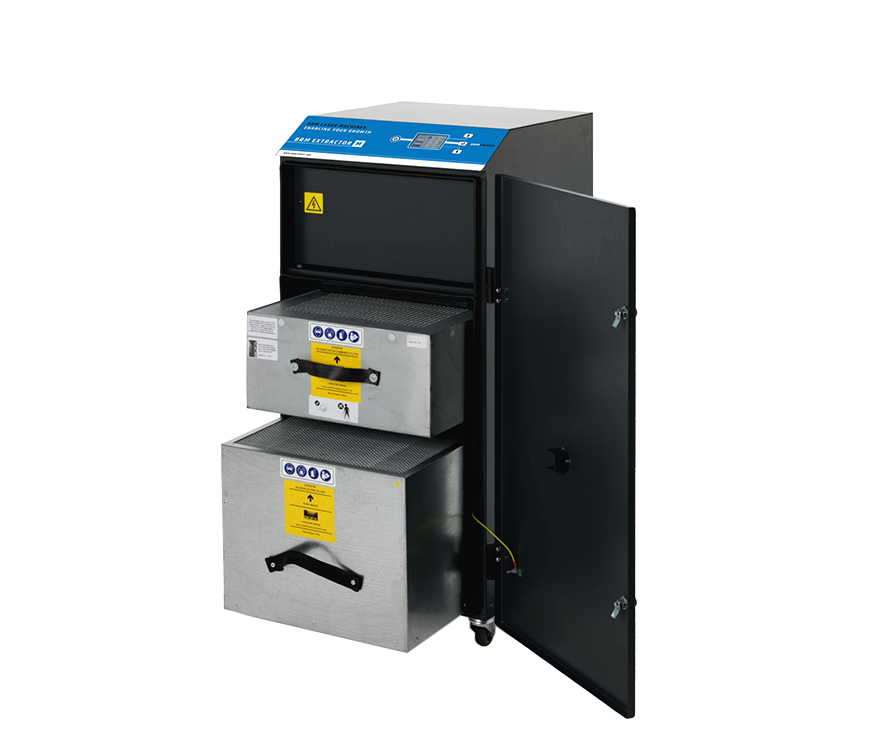 Het filteren van de gassen en stofdeeltjes die vrijkomen bij het snijden of graveren van materialen gaat in drie stappen. Allereerst gaan de afgezogen gassen en stofdeeltjes via een voorfilter naar een koolstoffilter waarna ze verder worden geleidt naar een chemische filter. Door de verschillende filters die de stoffen en gassen doorkruisen worden deze extreem goed gefilterd. De lucht die de extractor vervolgens uitblaast is dan ook volledig vrij van gassen en fijne deeltjes die bij het laseren vrij komen.