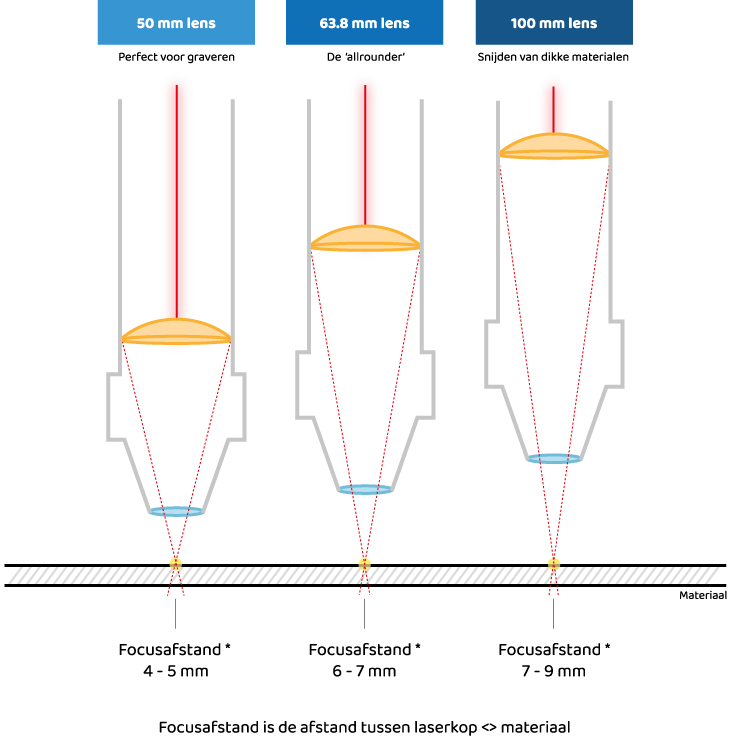 Voor BRM Lasermachines zijn er drie verschillende ‘smaken’ in lenzen. Zo hebben we de 50mm, 63.8mm en 100 mm lens. Maar welke kies je?