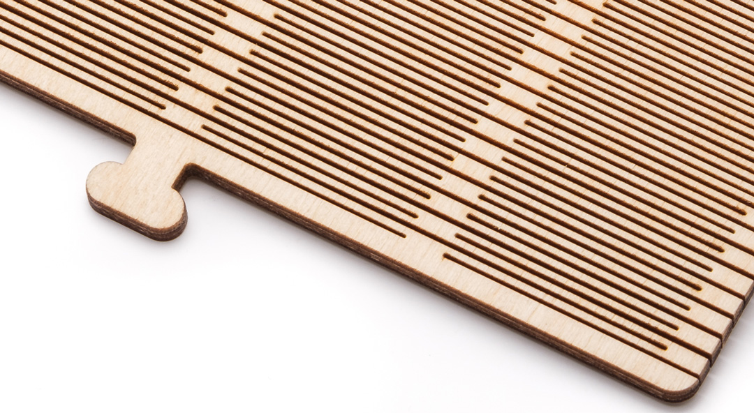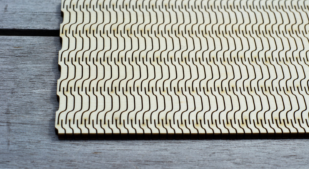 Deze techniek wordt ook wel een golfpatroon genoemd. Met deze techniek snij je niet alleen een rechte lijn, maar verwijder je wat materiaal waardoor er meer ruimte in het materiaal ontstaat. Door deze ruimte zul je je hout of acrylaat verder kunnen buigen!