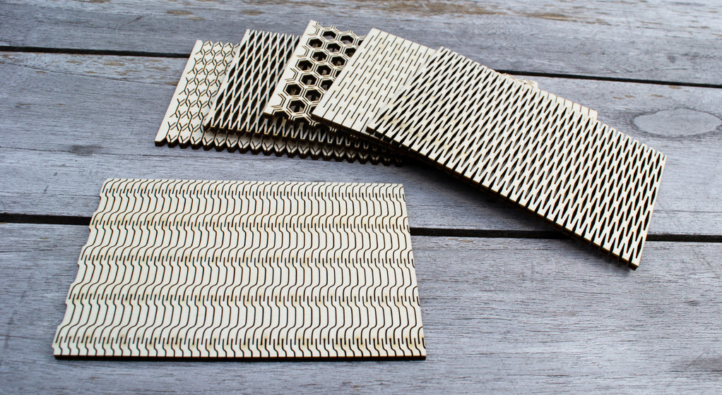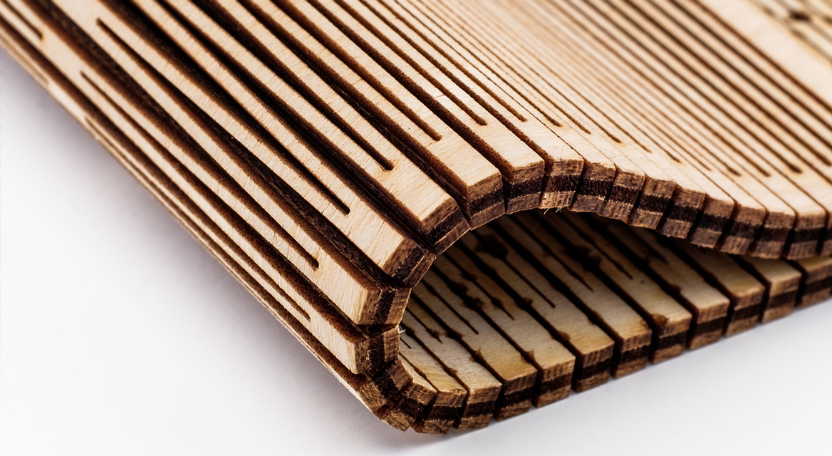 We horen je denken: “Een lasermachine maakt mijn materiaal toch niet buigbaar?!” Klopt. De lasermachine veranderd niets aan de samenstelling van je materiaal waardoor je het zou kunnen buigen. Maar een lasermachine kan je wel helpen je materiaal zodanig te bewerken dat je de rechte, stroeve hout- of acrylaatplaat wel zou kunnen buigen! Kijk eens naar onderstaande voorbeelden…