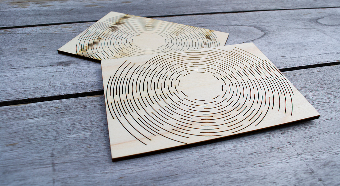 Maar hoe zit dat dat bij lasergraveren? Hier heeft je materiaal niets te maken met je werktafel. Toch wil dat niet zeggen dat je bij graveren geen terugslag hebt. Deze keer niet aan de onderkant maar aan de bovenkant van je product. Laten we eens goed kijken naar het proces. Wanneer je gaat graveren brandt je in feite een laag van je materiaal weg. De laag die je wegbrandt veranderd in stofdeeltjes die worden verspreid door de machine. Natuurlijk zuigt de machine deze deeltjes op door middel van je afzuigsysteem, maar soms blijft er een klein percentage rook en damp over. Dit zie je terug op je product omdat het op je product neer daalt en daar afkoelt. Er ontstaat vervolgens een wazige rand rondom je gravure die zeker in geval hout is deze ‘waas’ lastiger weg te poetsen is. Bijna automatisch dient je product dan nog nabewerkt te worden door bijvoorbeeld met fijn schuurpapier de gravure te verfijnen. Wat kun je dan doen aan die terugslag? Ook hier zijn een aantal mogelijkheden.