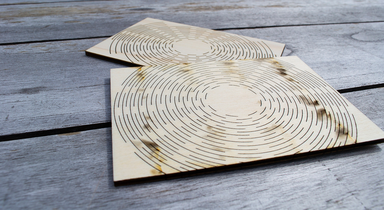 Wanneer je terugslag hebt op je materiaal door middel van lasersnijden maak je waarschijnlijk gebruik van hout, acrylaat of minstens lichtgekleurd, zwaarder materiaal. Even wat technische uitleg; de laserstraal van je machine is een krachtige bron. De afstand tussen de laserkop en je materiaal is het meest krachtig, de afstand van je tafel tot de opvangbak minder. Dat is maar goed, anders zou de laser ook jouw ontwerpen uit je opvangbak uitsnijden. Wanneer de laserstraal de lijnen van jouw ontwerp volgt, komt deze haast onvermijdelijk over de lamellen of honingraad van je tafel. Het contact tussen de laser en de tafel veroorzaakt de terugslag op jouw product. Hoe kun je dat nu het beste tegen gaan?